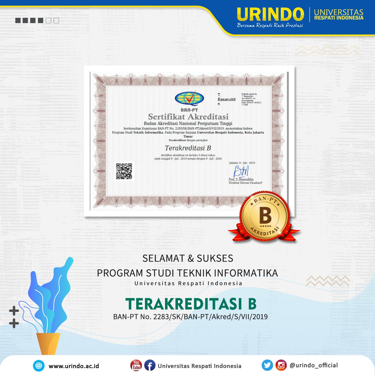 Universitas Respati Indonesia Urindo On Twitter Selamat Sukses Program Studi Teknik Informatika Urindo Telah Terakditasi B Oleh Ban Pt Semoga Kedepannya Kampus Urindo Semakin Jaya Dan Mengahasilkan Mahasiswa Yang Berprestasi Urindo